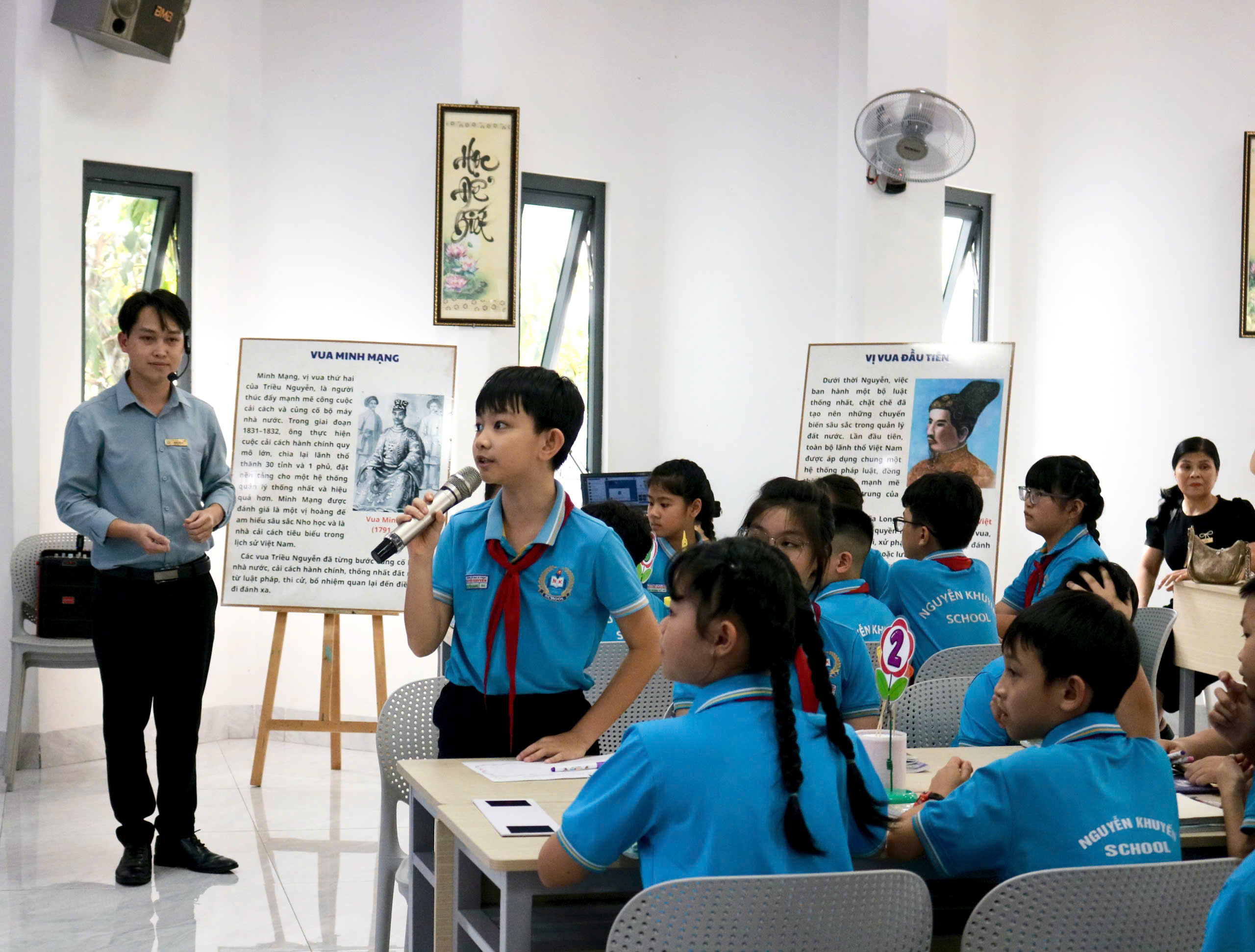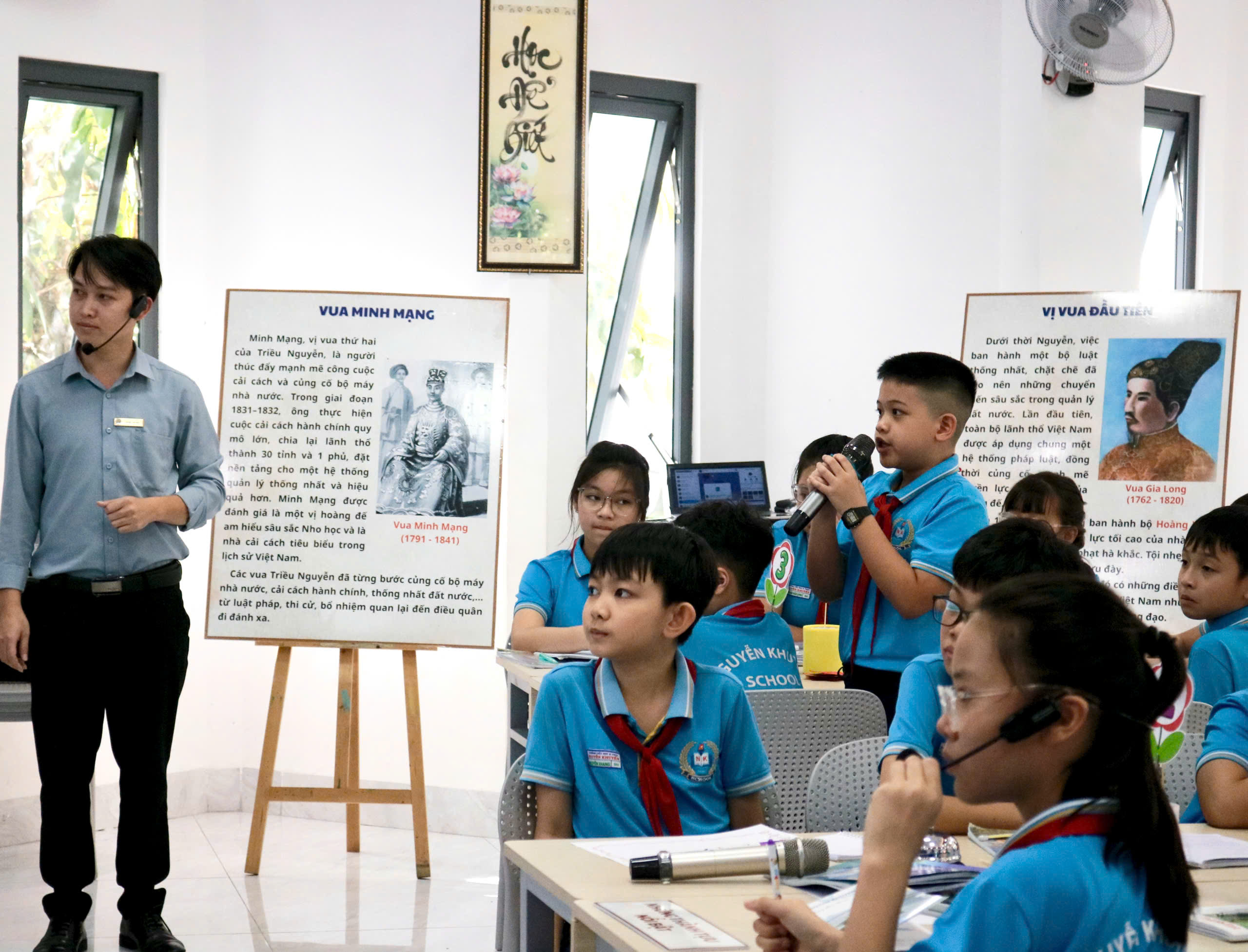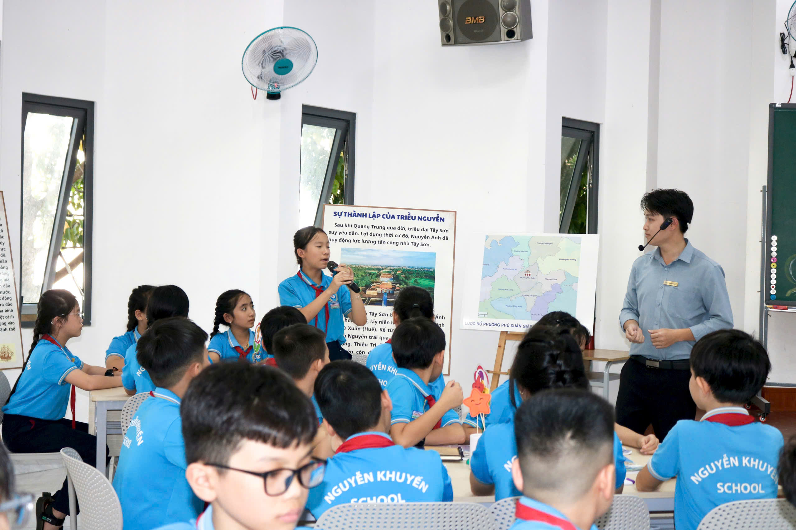 Trong tiết dạy, thầy Hoàng Văn Đạo (giáo viên trực tiếp giảng dạy), cô Lê Thị Thi (TTCM khối 4) cùng đội ngũ giáo viên khối 5 đã ứng dụng hiệu quả các công cụ AI như Canva, Gemini, Kahoot… vào từng hoạt động học tập của học sinh. Giáo viên đồng thời kết hợp linh hoạt các phương pháp trực quan, hoạt động nhóm và hệ thống câu hỏi gợi mở, giúp học sinh chủ động tiếp cận kiến thức, hiểu sâu hơn về bối cảnh hình thành, công cuộc xây dựng đất nước và những dấu ấn nổi bật của triều Nguyễn – triều đại phong kiến cuối cùng trong lịch sử Việt Nam.