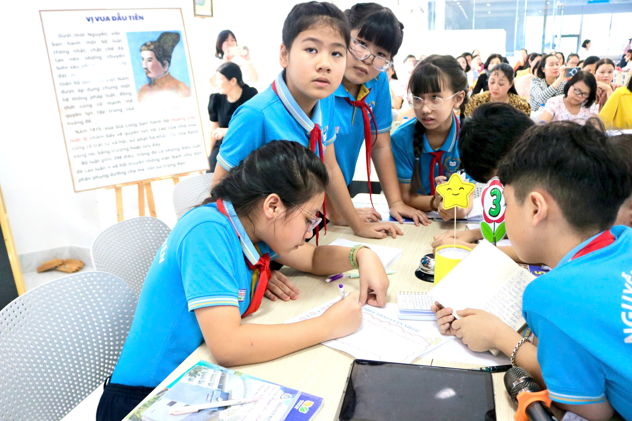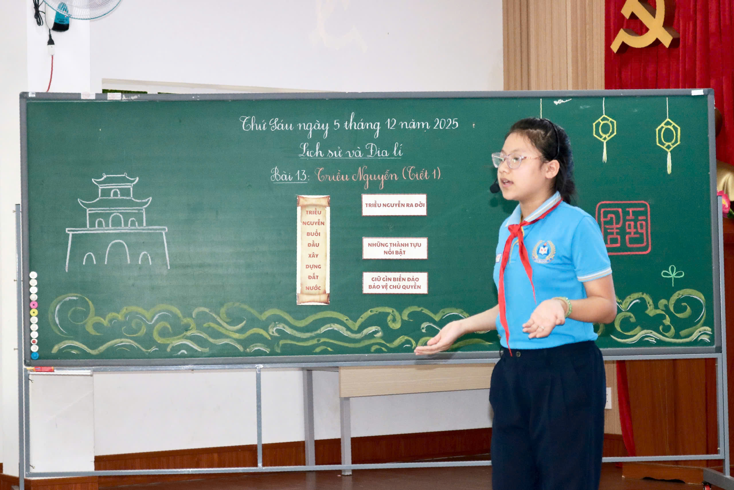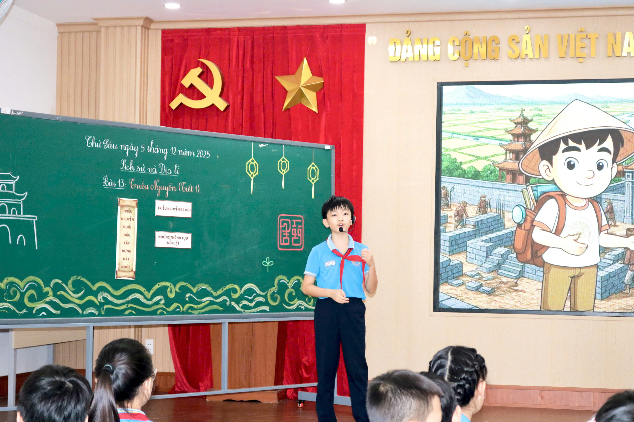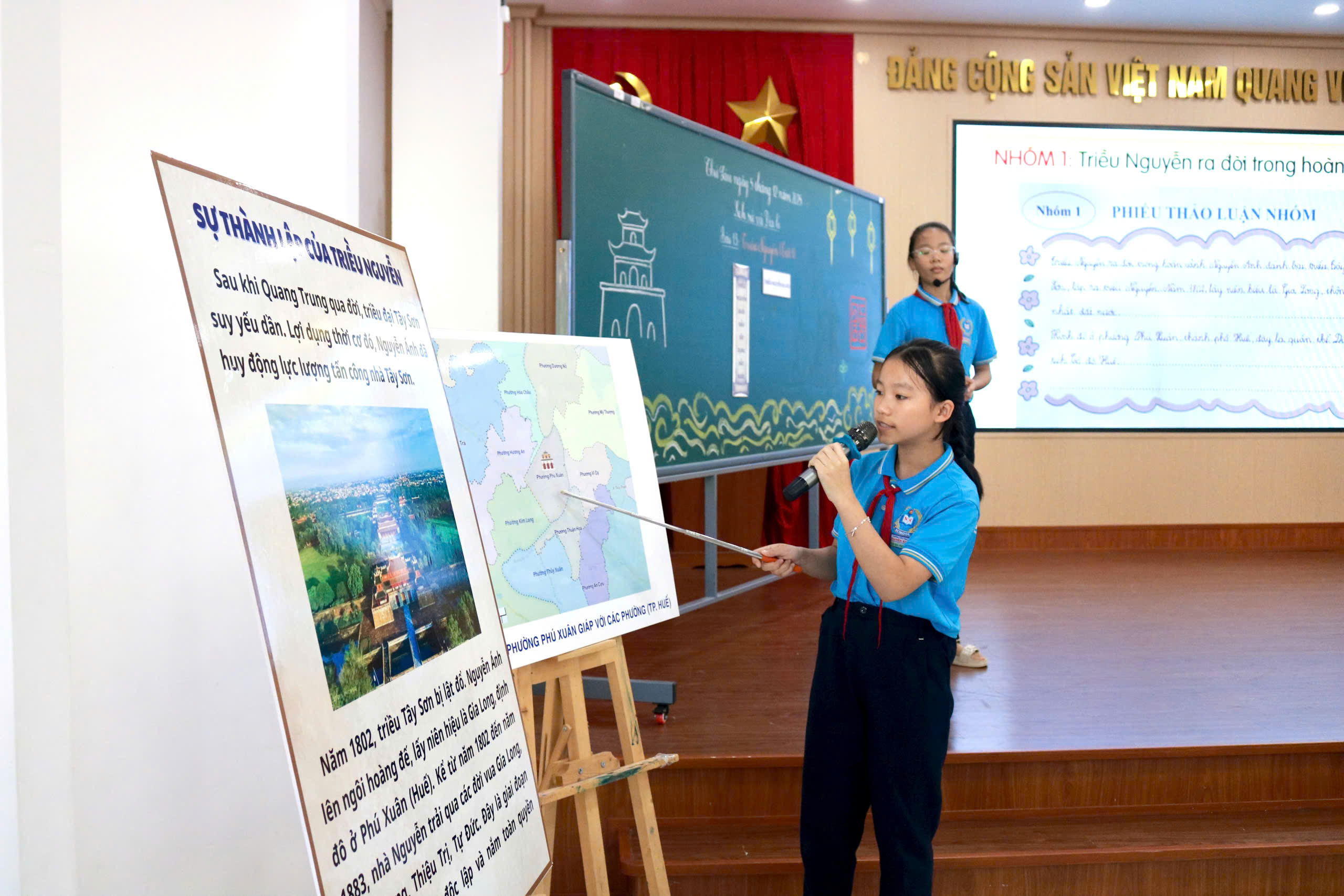 Trong tiết dạy, thầy Hoàng Văn Đạo (giáo viên trực tiếp giảng dạy), cô Lê Thị Thi (TTCM khối 4) cùng đội ngũ giáo viên khối 5 đã ứng dụng hiệu quả các công cụ AI như Canva, Gemini, Kahoot… vào từng hoạt động học tập của học sinh. Giáo viên đồng thời kết hợp linh hoạt các phương pháp trực quan, hoạt động nhóm và hệ thống câu hỏi gợi mở, giúp học sinh chủ động tiếp cận kiến thức, hiểu sâu hơn về bối cảnh hình thành, công cuộc xây dựng đất nước và những dấu ấn nổi bật của triều Nguyễn – triều đại phong kiến cuối cùng trong lịch sử Việt Nam.