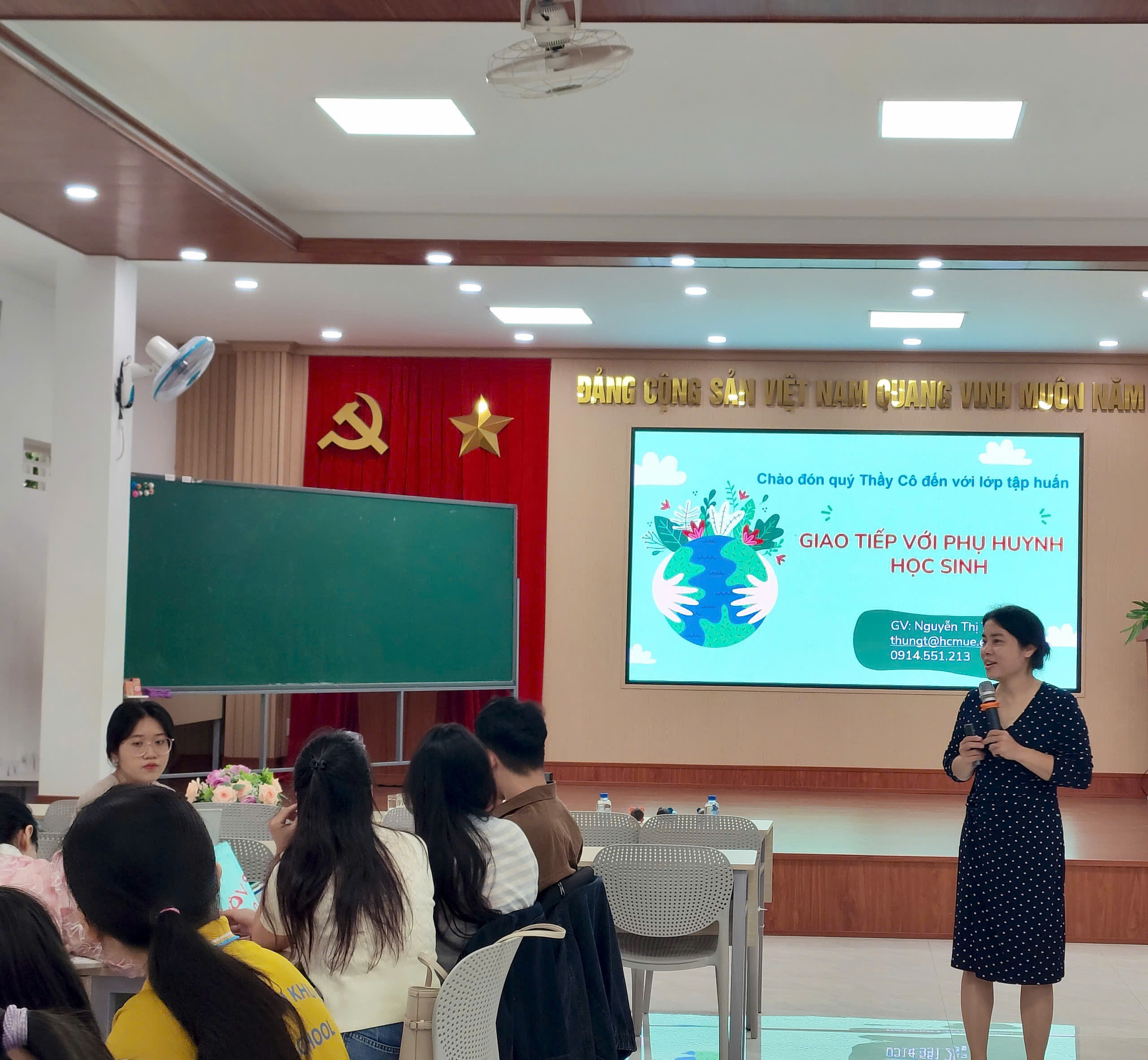 Buổi tập huấn tập trung vào những kỹ năng then chốt trong công tác giáo dục hiện nay: Kỹ năng lắng nghe và thấu hiểu học sinh nhằm nắm bắt nhu cầu, cảm xúc và hỗ trợ các em phát triển tốt nhất. Xây dựng mối quan hệ gắn kết với Cha mẹ học sinh, từ đó tạo nên cầu nối thân thiện và bền vững giữa gia đình – nhà trường – học sinh. Thực hành giao tiếp và xử lý tình huống trong giáo dục, giúp giáo viên thêm tự tin, linh hoạt và hiệu quả trong giảng dạy cũng như công tác chủ nhiệm.