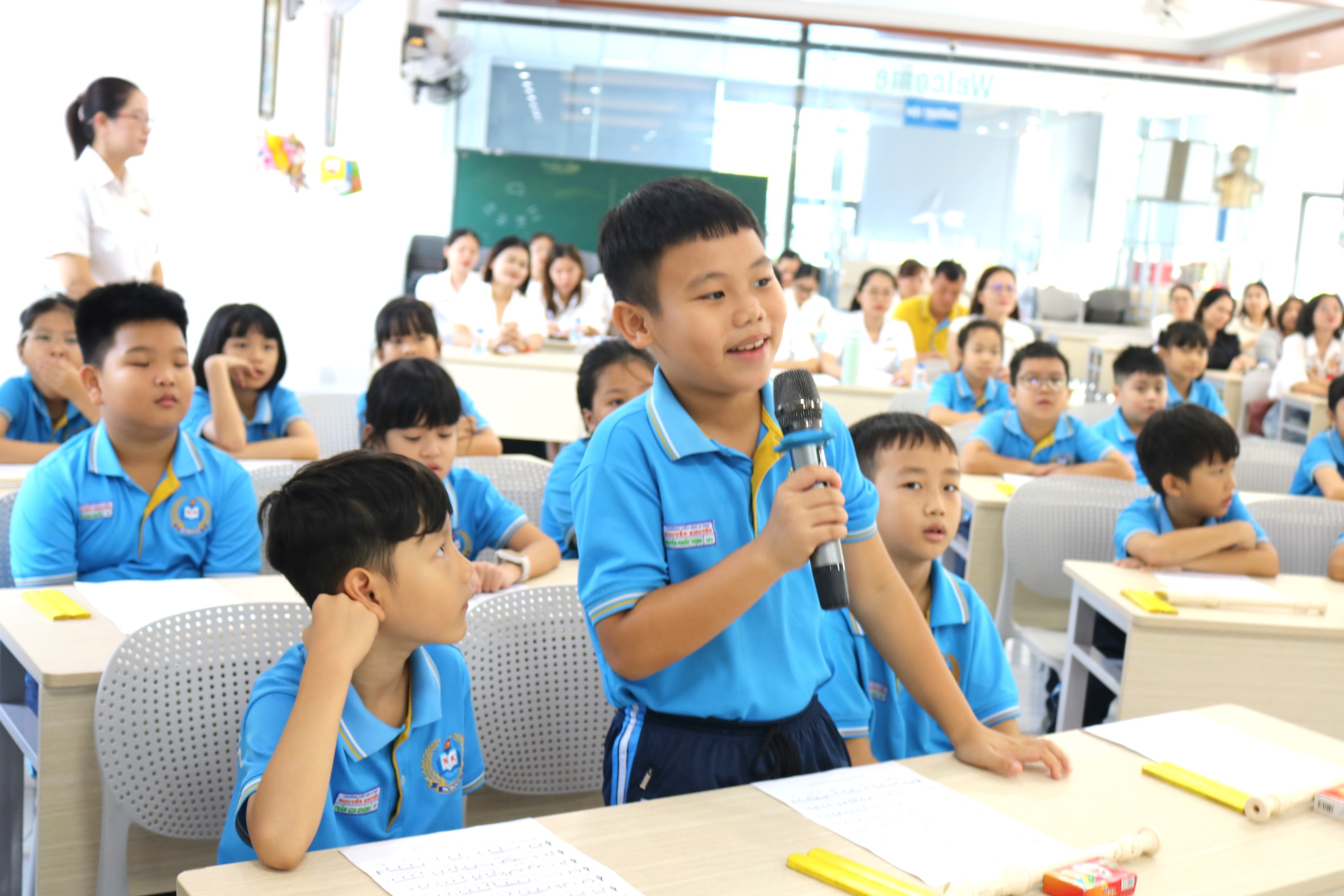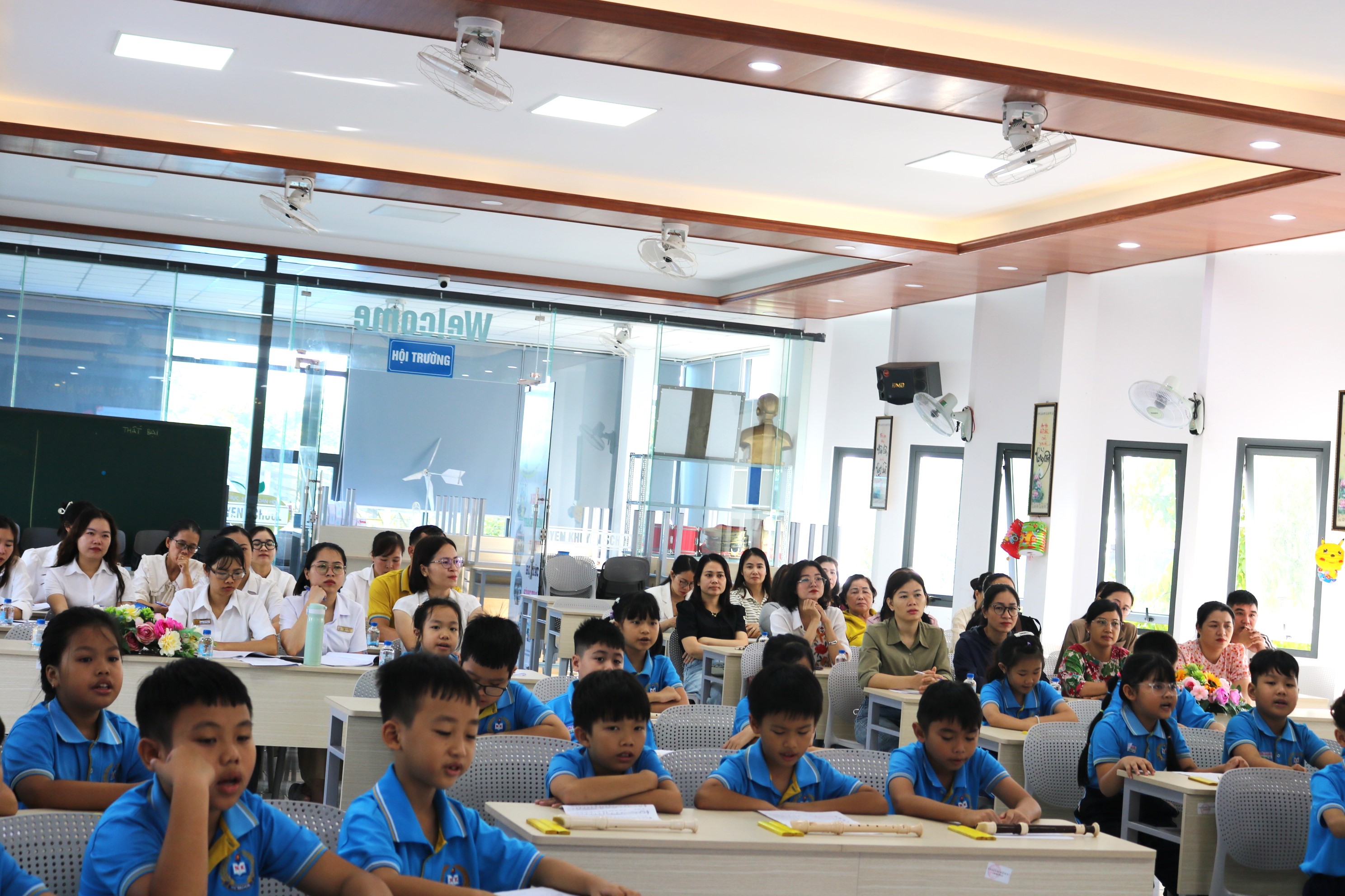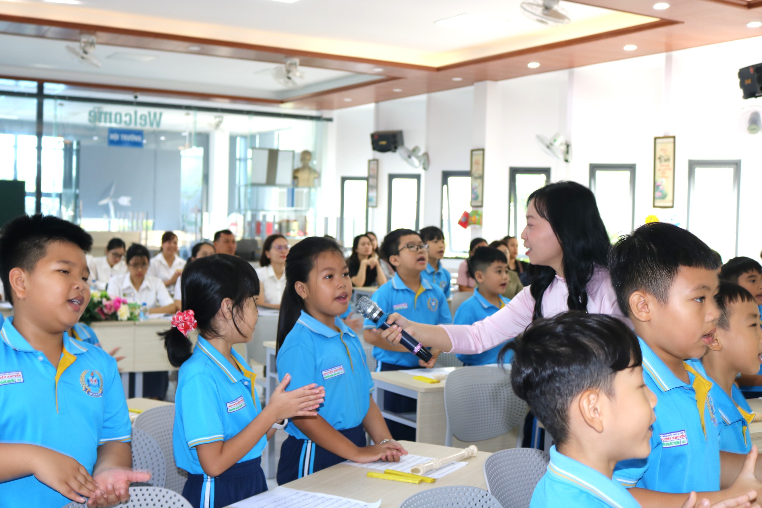 Nhà trường xin trân trọng gửi lời cảm ơn đến quý thầy cô và cha mẹ học sinh đã đến tham dự, cổ vũ và đồng hành cùng các em. Tiết học hôm nay không chỉ là một buổi học trải nghiệm âm nhạc mà còn là một dấu ấn đáng nhớ, ghi lại sự tự tin, niềm đam mê và sự trưởng thành của học sinh Nguyễn Khuyến.