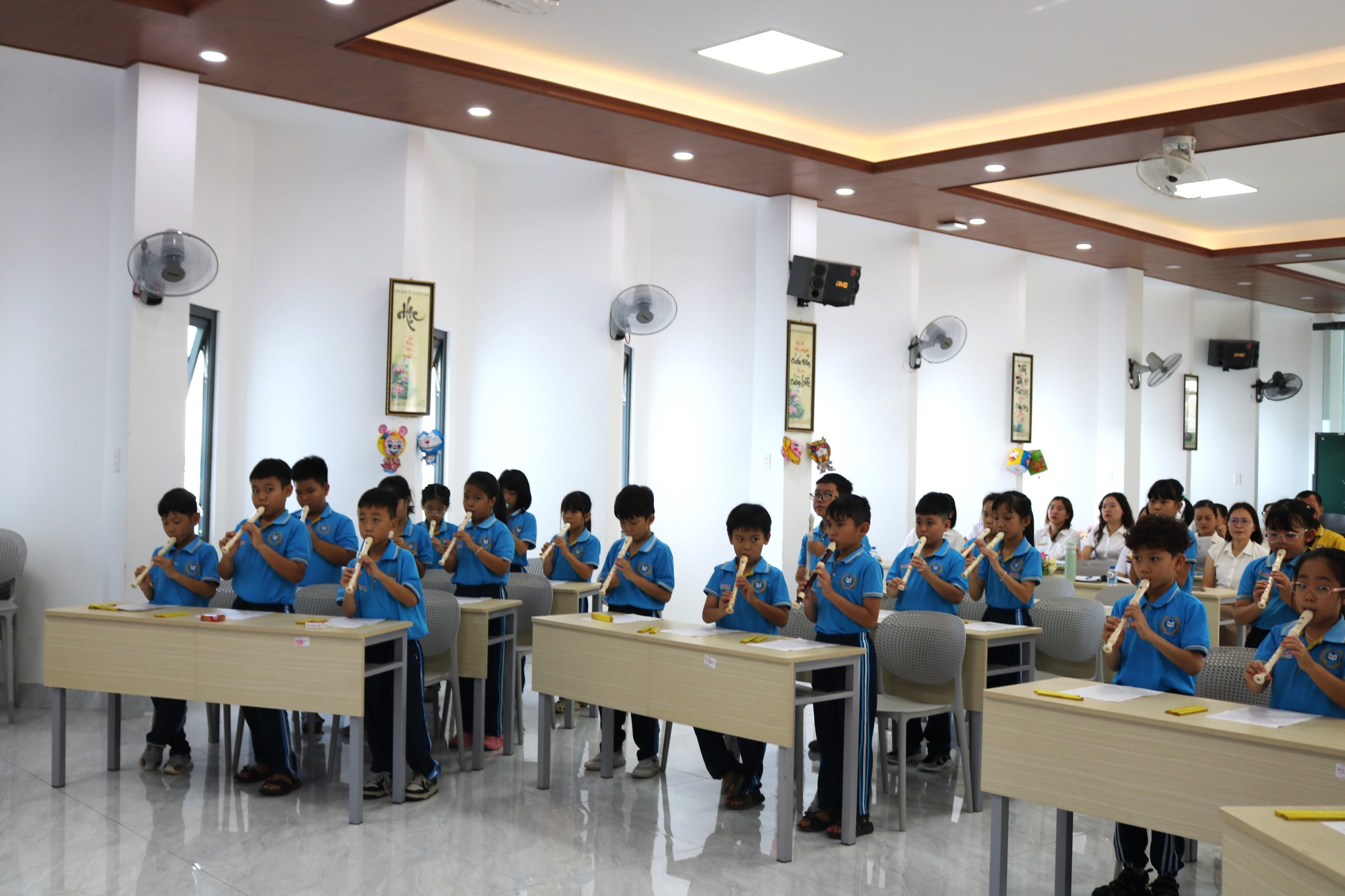 Đây là tiết học mở đầu tiên của năm học 2025 – 2026, do cô Lê Thị Mỹ Duyên – giáo viên Âm nhạc, trực tiếp giảng dạy. Không chỉ là một tiết học nghệ thuật, đây còn là dịp để phụ huynh hiểu hơn về quá trình học tập của con, đồng thời trở thành sợi dây gắn kết ý nghĩa giữa nhà trường – gia đình – học sinh.