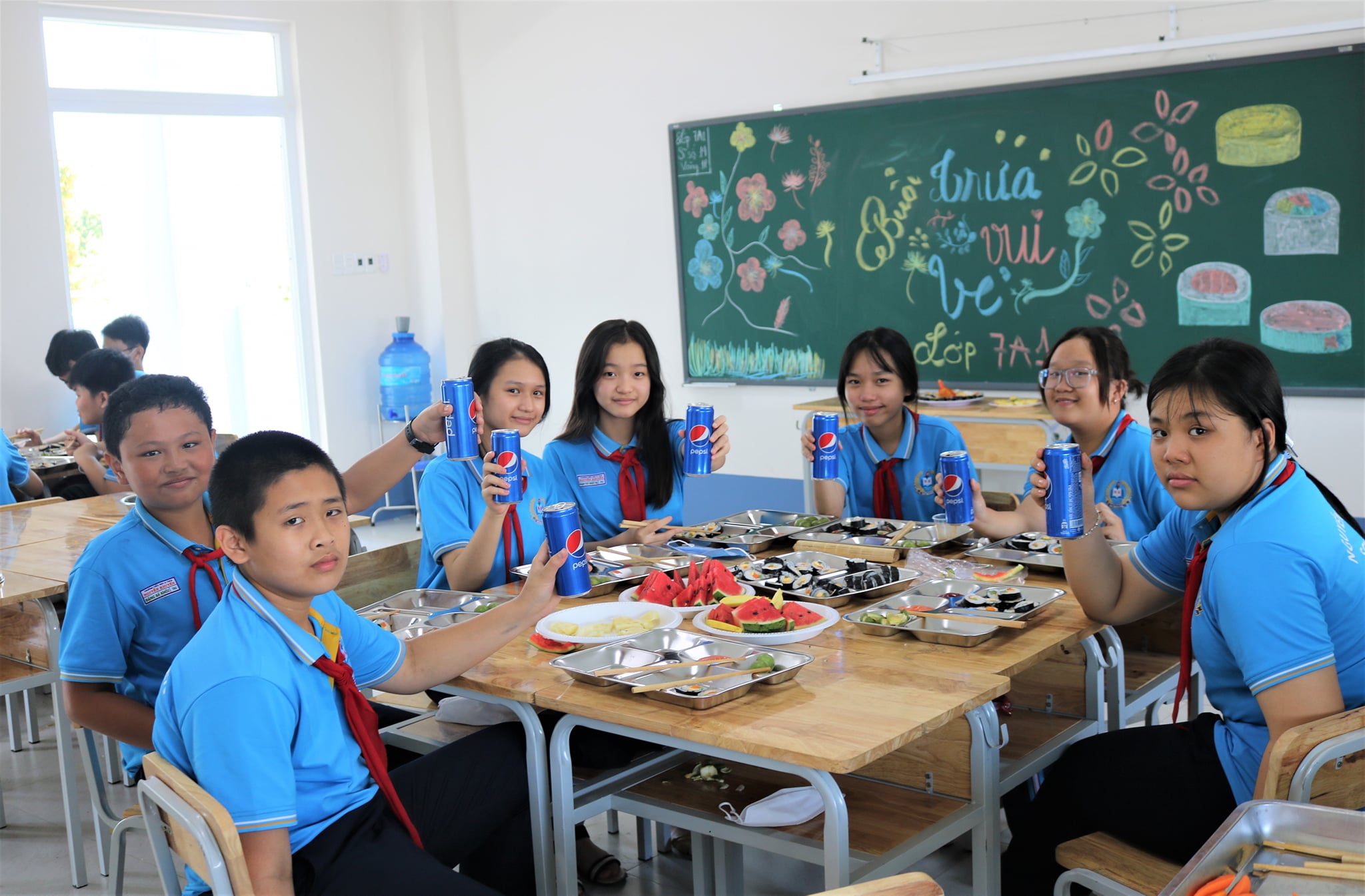 Với sự hướng dẫn của thầy cô, các em học sinh lớp 6, 7 đã khéo léo làm ra những cuộn cơm thật ngon và đẹp mắt. Không chỉ tự tay làm mà các em còn thổi hồn vào món ăn qua cách trang trí đẹp mắt và thuyết trình thông điệp mà các em muốn truyền tải qua món ăn.