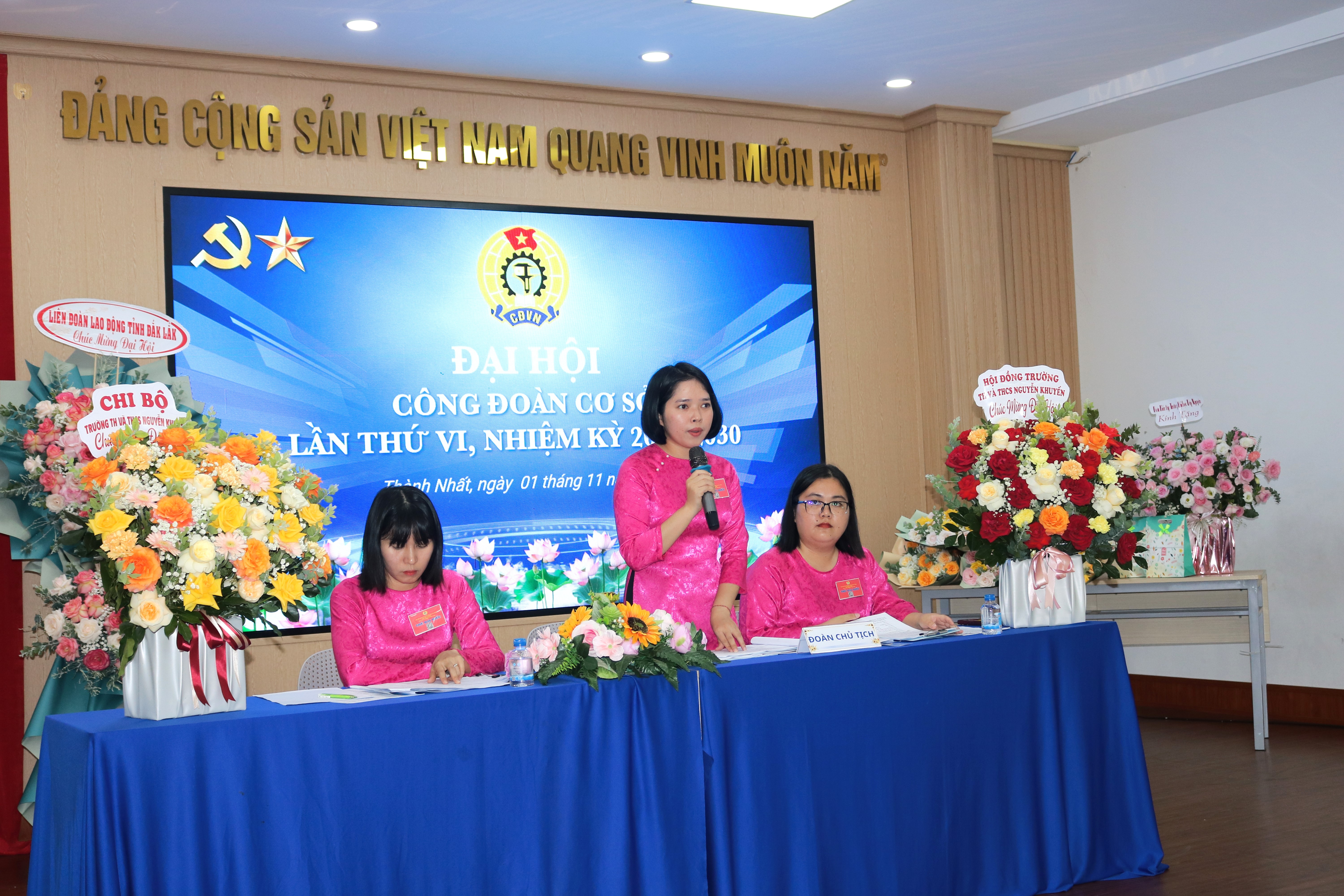 Đại hội vinh dự đón tiếp đồng chí Hoàng Anh Tuấn – Ủy viên Ban Thường vụ Liên đoàn Lao động tỉnh, Phó Trưởng Ban Công tác Công đoàn, đồng chí Trần Đình Nhã - đại biểu của Ban chấp hành công đoàn phường Buôn Ma Thuột về dự và chỉ đạo. Cùng tham dự có đại diện Chi bộ, Ban Giám hiệu, các tổ chuyên môn và toàn thể đoàn viên công đoàn nhà trường.