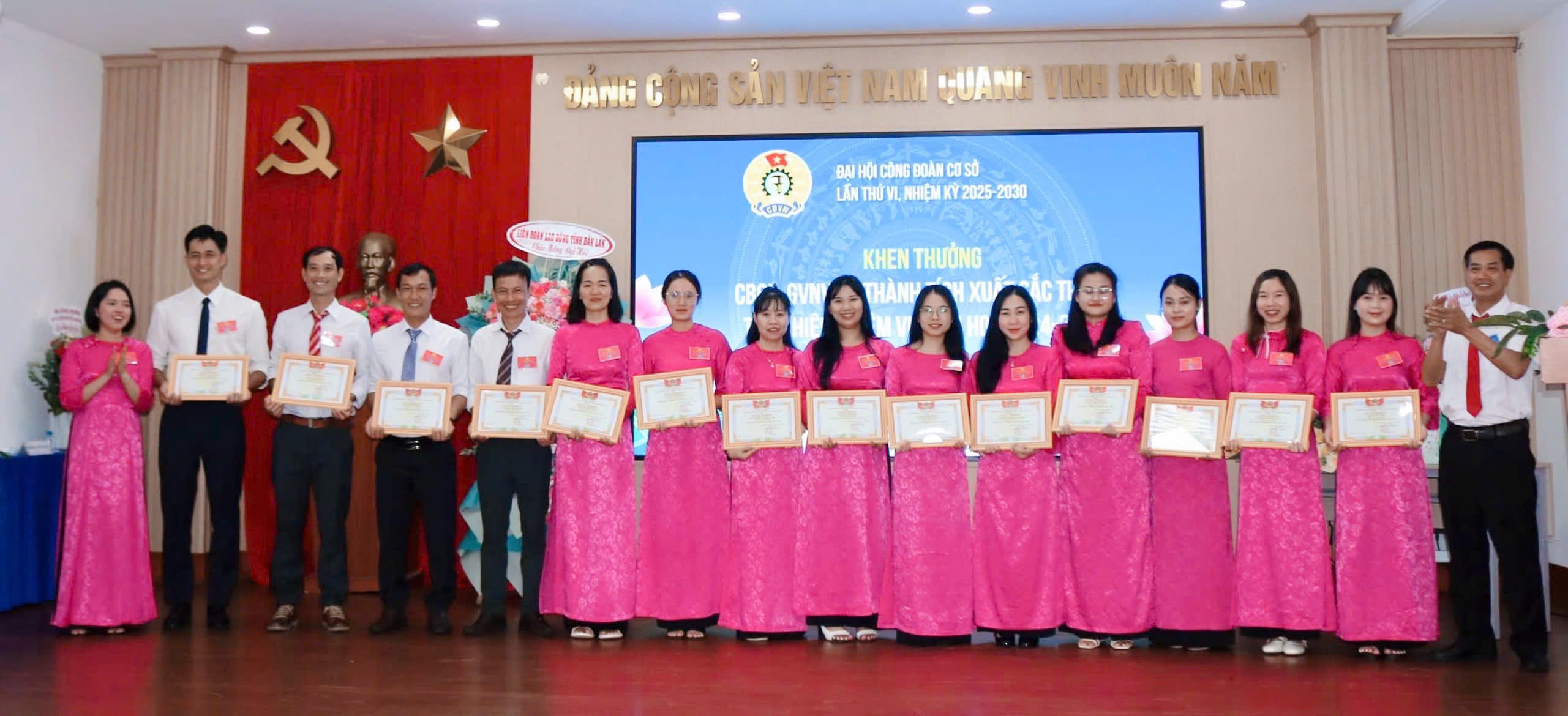 Bên cạnh đó, nhằm ghi nhận và lan tỏa những nỗ lực không ngừng của đội ngũ nhà giáo, Đại hội đã vinh danh các cá nhân tiêu biểu trong năm học 2024–2025. Đó là những thầy cô có sáng kiến kinh nghiệm được UBND TP. Buôn Ma Thuột công nhận, những cán bộ, giáo viên, nhân viên hoàn thành xuất sắc nhiệm vụ, cùng các thầy cô đạt giải cao trong Hội thi Giáo viên dạy giỏi và Cuộc thi Viết chữ đẹp “Nét bút nhà giáo” năm học 2025–2026.