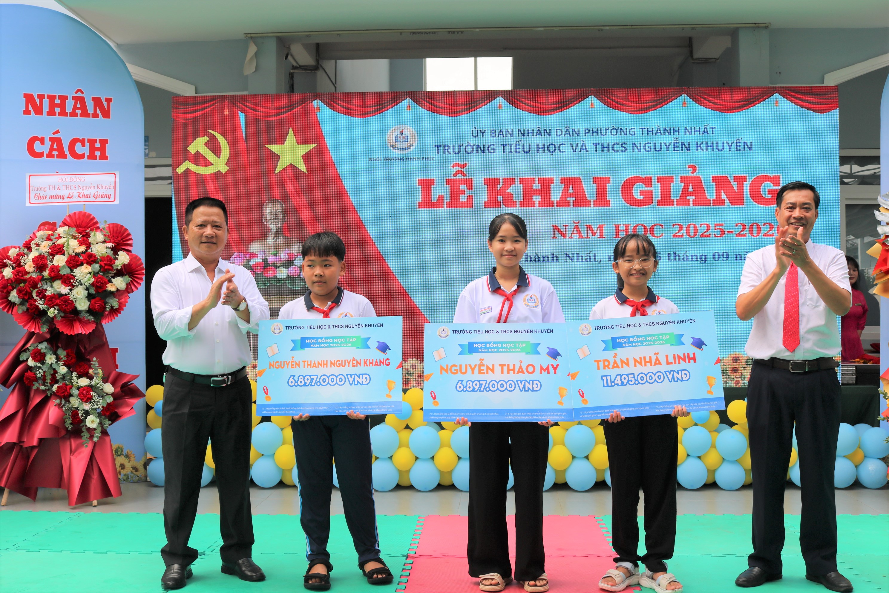 Trao học bổng cho 3 học sinh đạt điểm xuất sắc trong kì thi tuyển sinh lớp 6 năm học 2025-2026. Tổng trị giá học bổng 25.289.000VNĐ