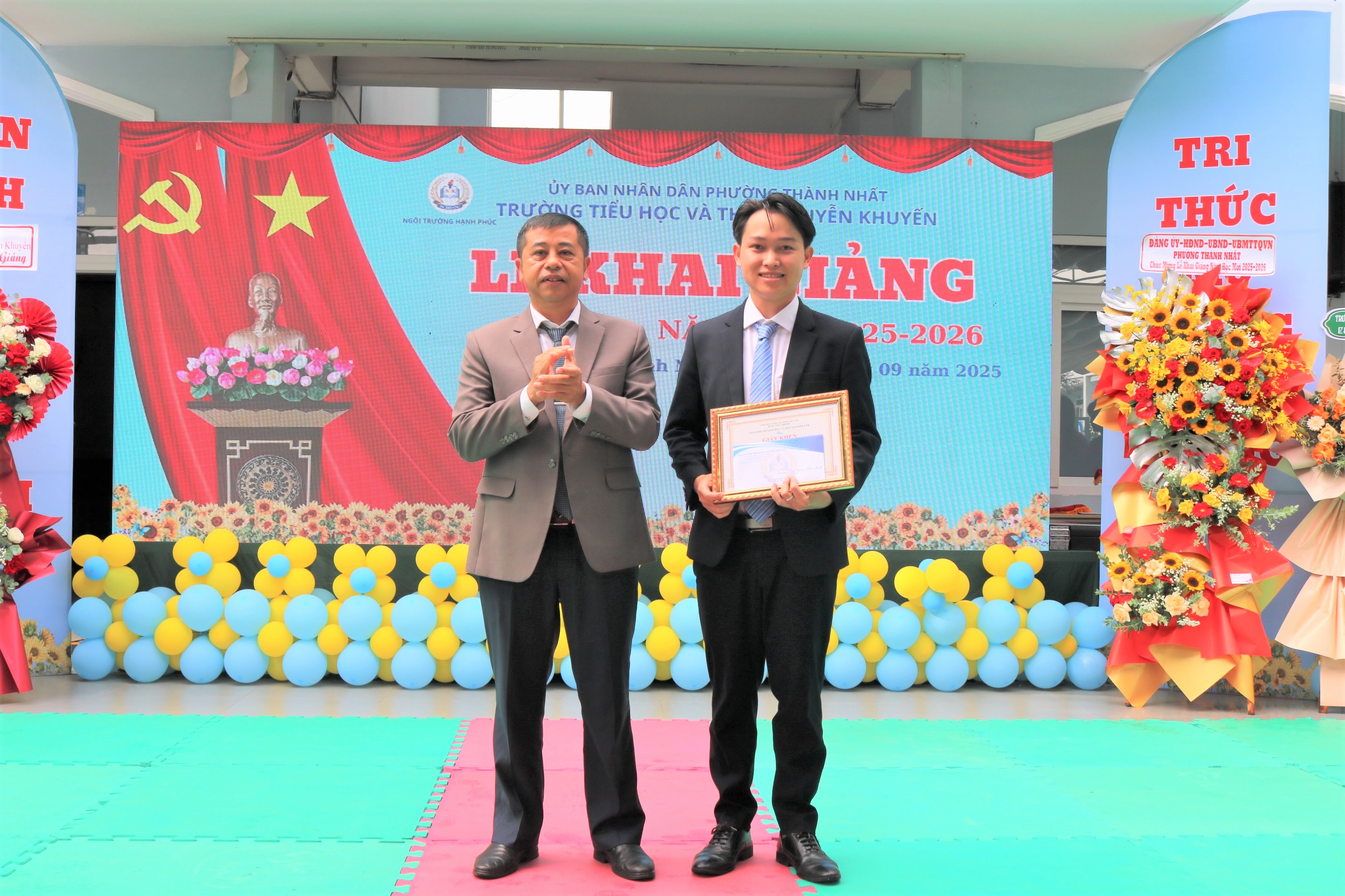 Nhân dịp này Tập thể sư phạm và các em học sinh toàn trường nhận được sự quan tâm và nhiều hoa, quà chúc mừng từ: lãnh đạo UBND Phường Thành Nhất; đơn vị kết nghĩa Tiểu đoàn 303; Ngân hành BIDV, Ban đại diện Hội CMHS của trường, CÔNG TY TNHH ĐẦU TƯ XÂY DỰNG LS; phụ huynh em Trần Kỳ, phụ huynh em Nhã Uyên (6A1) - Long Vịnh (2A1), Công ty THHH dịch vụ Dũng Phát Đạt...và rất nhiều quý đối tác đã gửi hoa thay cho lời chúc mừng và sự đồng hành cùng nhà trường.