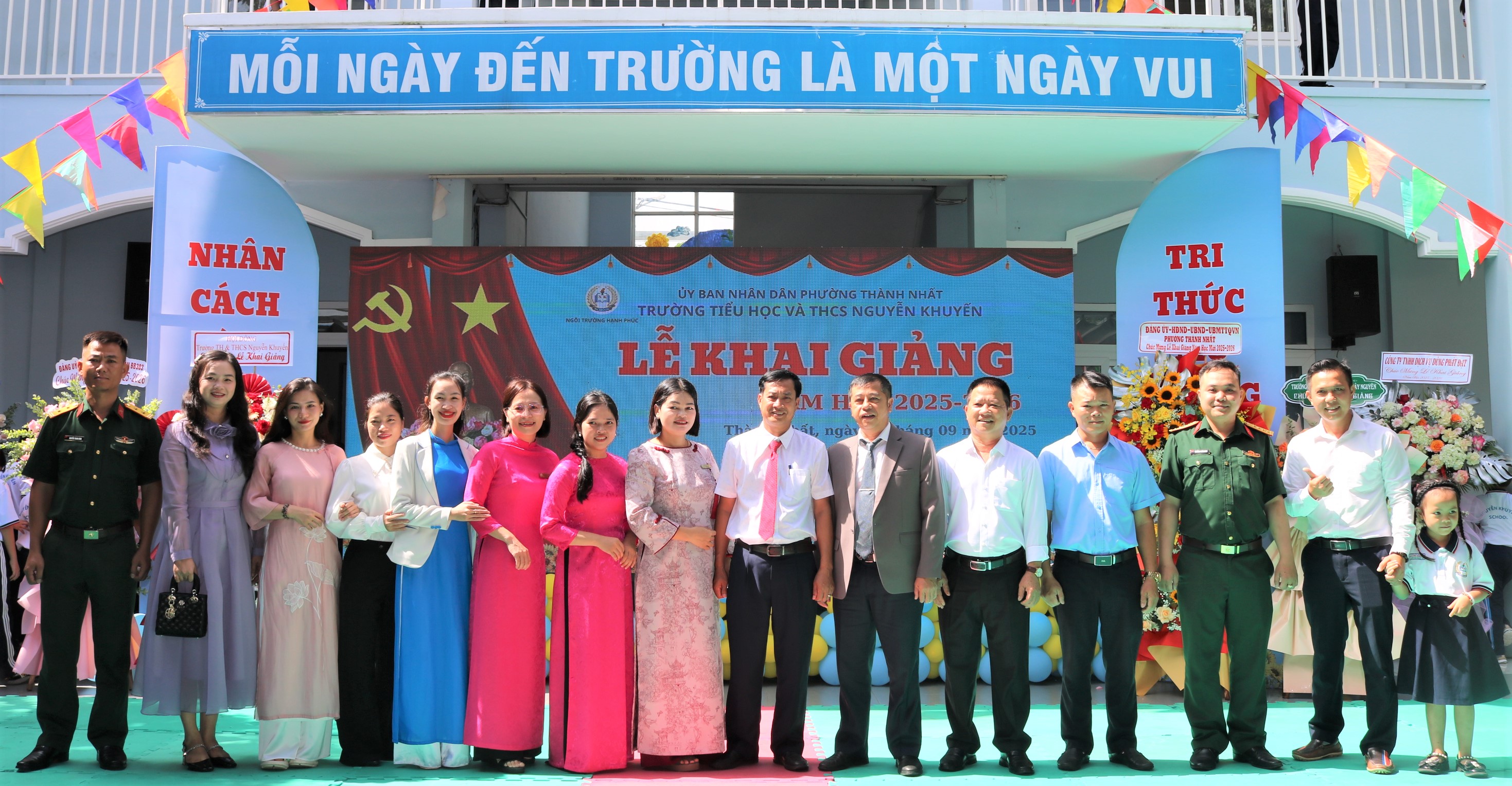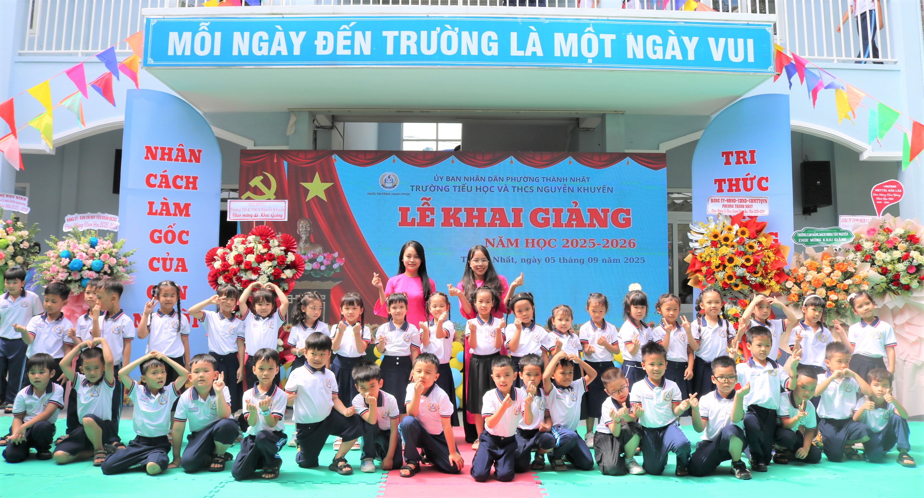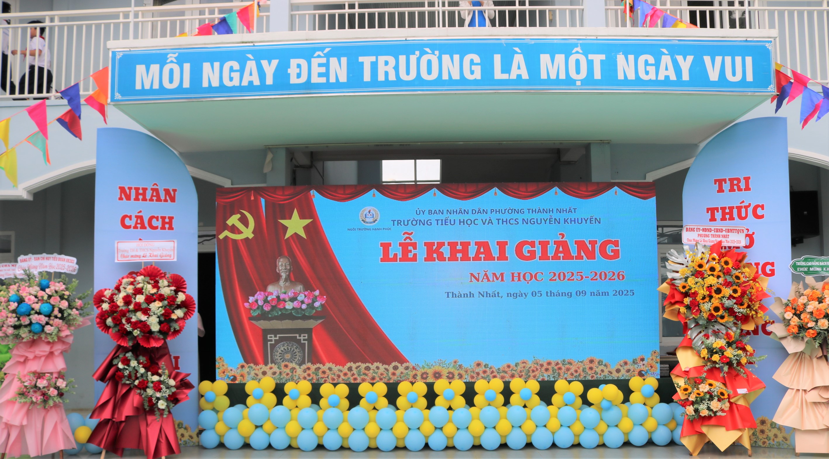 Nhà trường xin trân trọng gửi lời cảm ơn sâu sắc đến quý đối tác, quý CMHS, các thầy cô giáo cùng toàn thể các em học sinh đã góp phần tạo nên một Lễ Khai giảng trang trọng, ý nghĩa và tràn đầy cảm xúc. Sự đồng hành và tin tưởng của quý vị chính là động lực để thầy và trò Trường Tiểu học & THCS Nguyễn Khuyến tiếp tục nỗ lực, vững bước trên hành trình chinh phục đỉnh cao của tri thức.