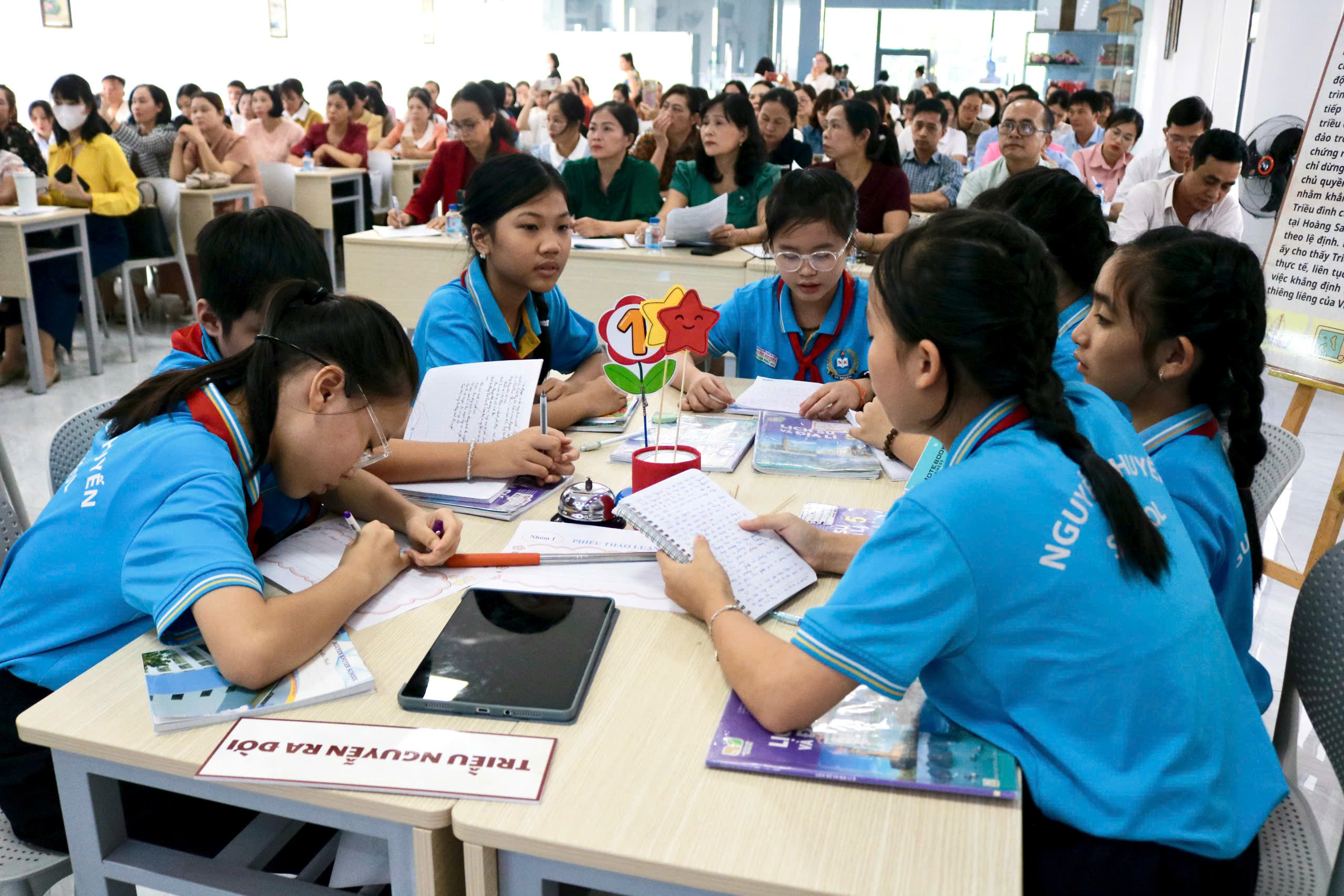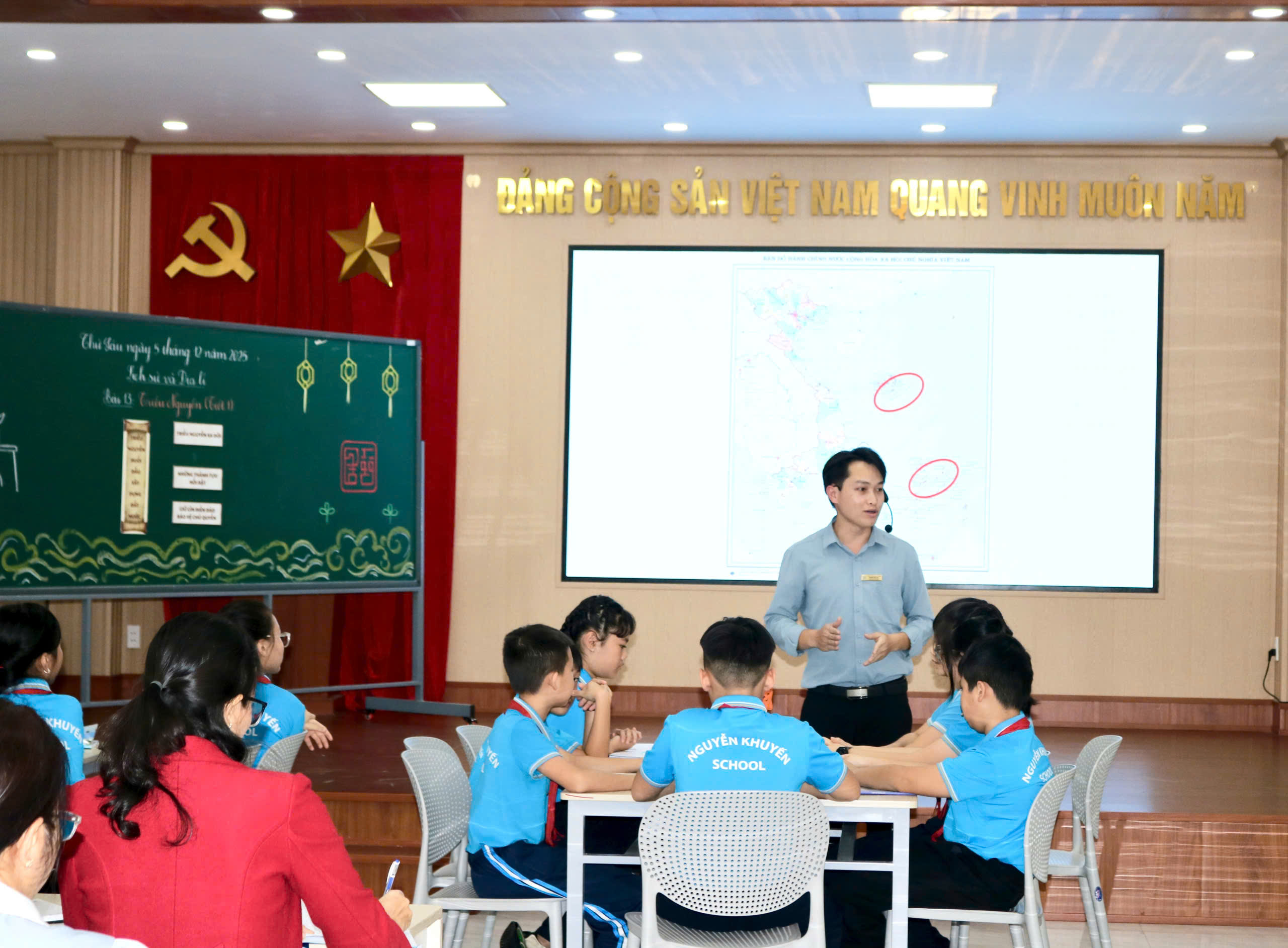 Không khí lớp học diễn ra sôi nổi; học sinh tích cực tương tác, tự tin trình bày ý kiến và thể hiện khả năng tư duy độc lập. Qua tiết dạy, thầy cô đã góp phần khẳng định vai trò quan trọng của môn Lịch sử và Địa lí trong việc bồi dưỡng tình yêu quê hương, đất nước cho học sinh – những chủ nhân tương lai của đất nước.