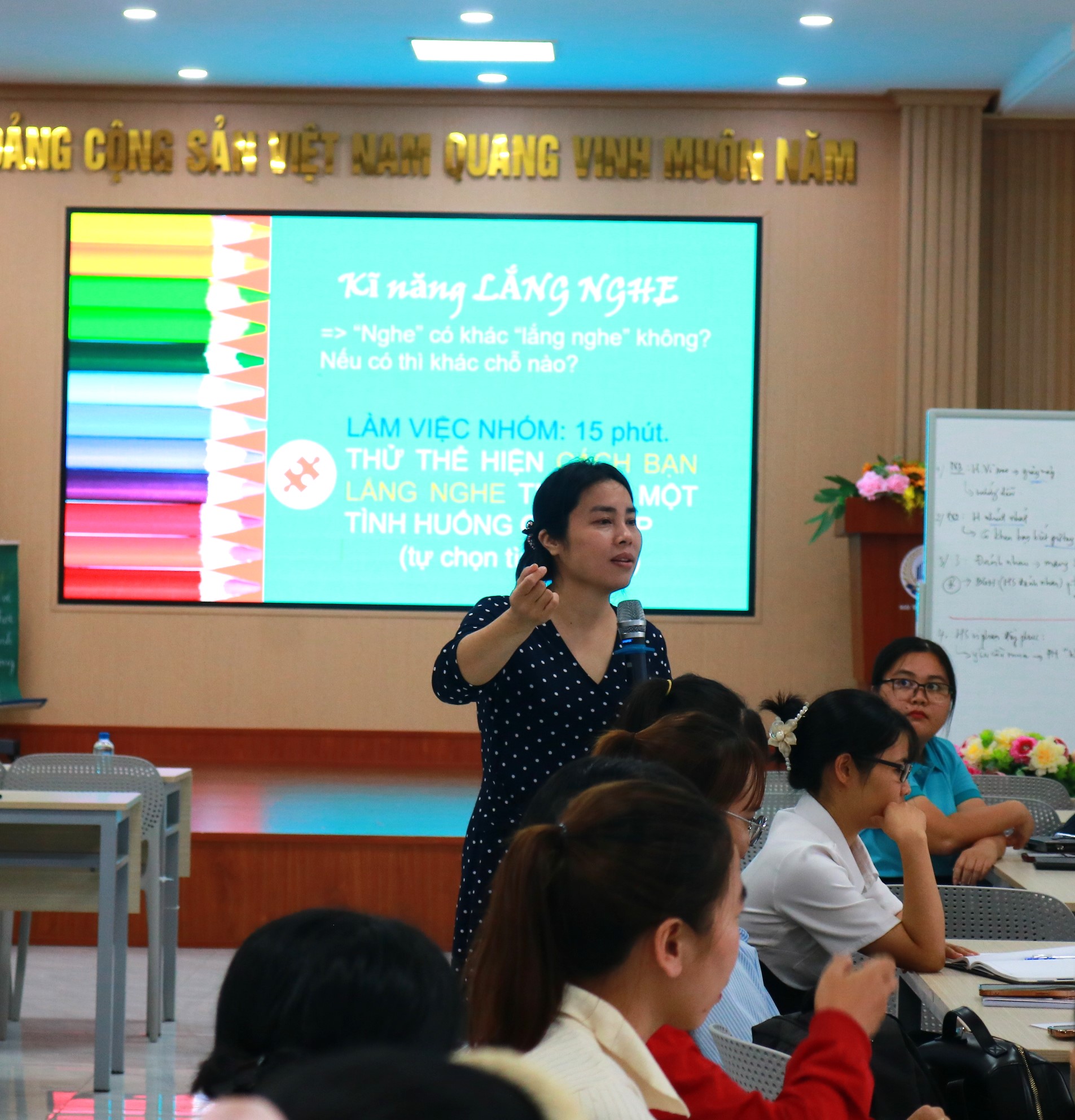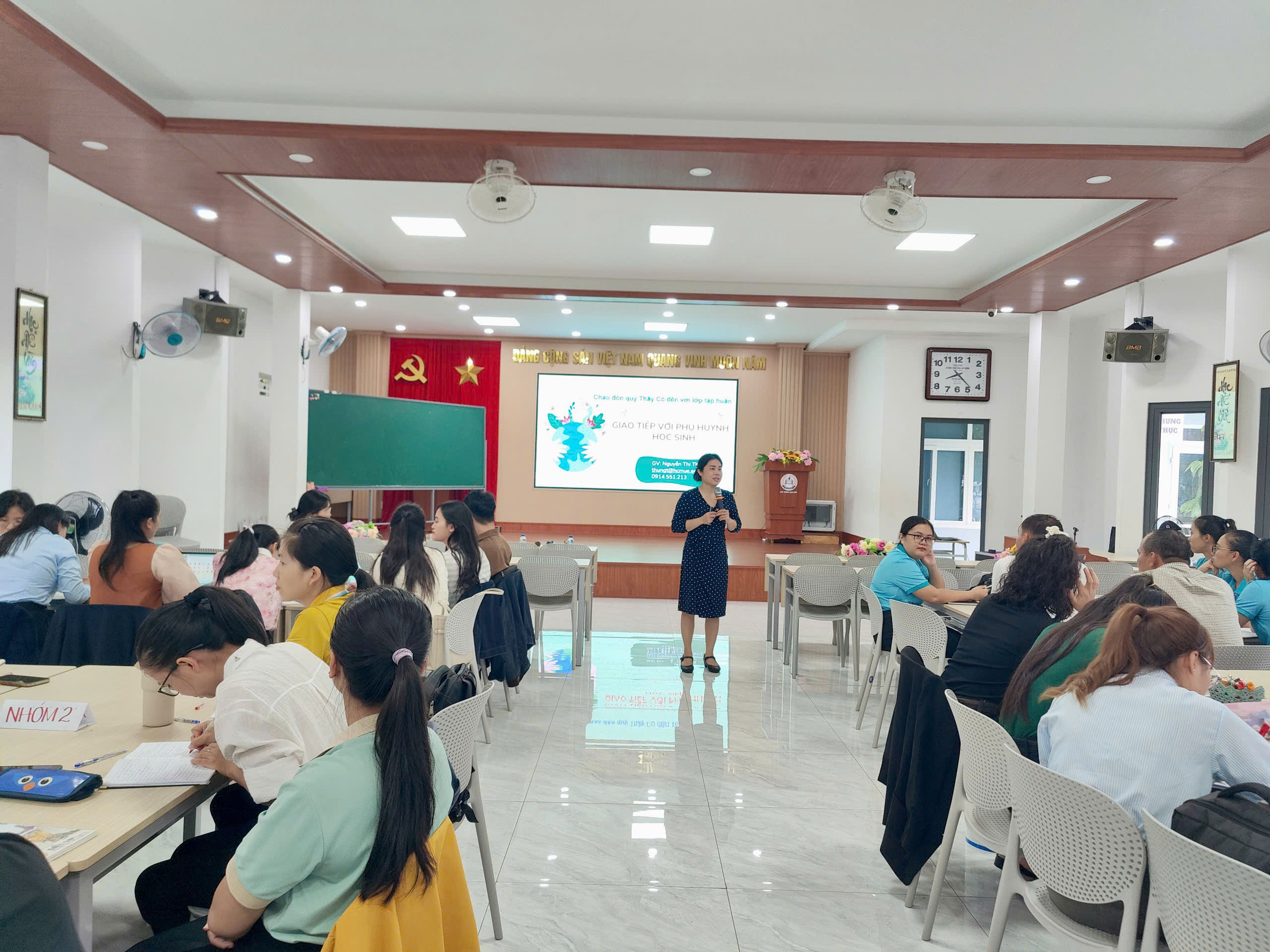 Buổi tập huấn tập trung vào những kỹ năng then chốt trong công tác giáo dục hiện nay: Kỹ năng lắng nghe và thấu hiểu học sinh nhằm nắm bắt nhu cầu, cảm xúc và hỗ trợ các em phát triển tốt nhất. Xây dựng mối quan hệ gắn kết với Cha mẹ học sinh, từ đó tạo nên cầu nối thân thiện và bền vững giữa gia đình – nhà trường – học sinh. Thực hành giao tiếp và xử lý tình huống trong giáo dục, giúp giáo viên thêm tự tin, linh hoạt và hiệu quả trong giảng dạy cũng như công tác chủ nhiệm.