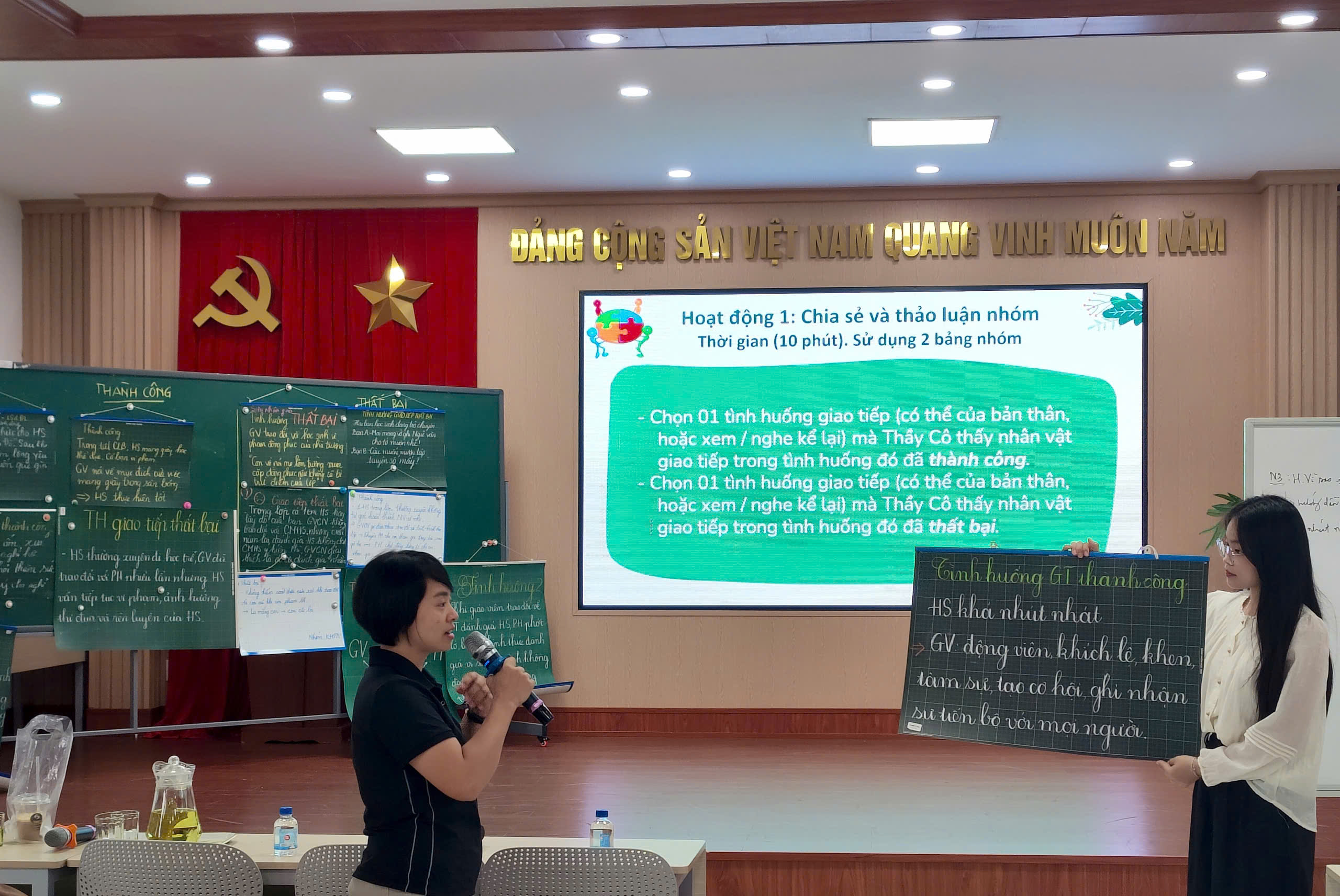 Các nhóm thảo luận sôi nổi, cùng nhau phân tích tình huống sư phạm và đưa ra giải pháp hiệu quả.