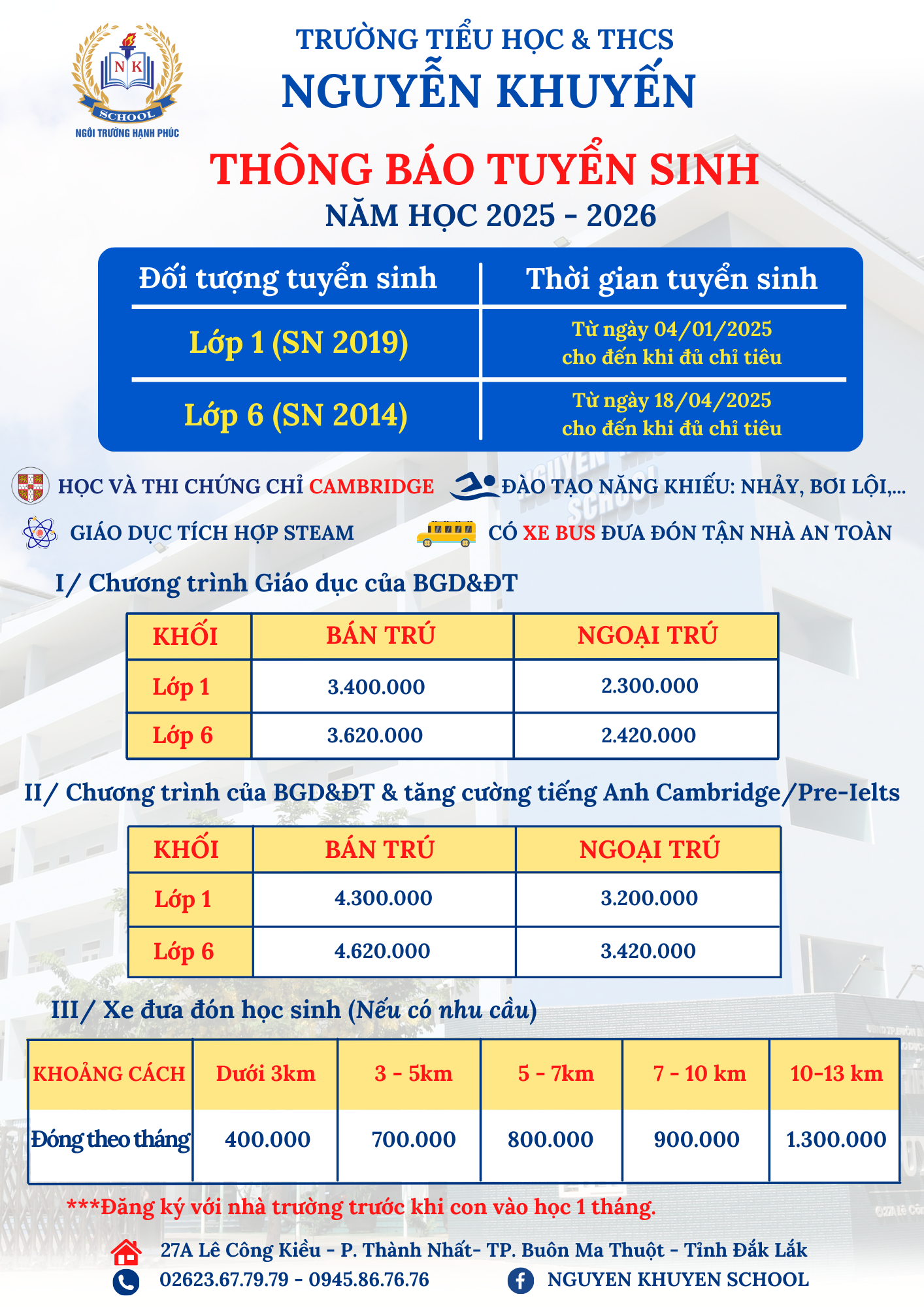 🔔 Trường Tiểu học & THCS Nguyễn Khuyến thông báo tuyển sinh lớp 1 năm học 2025-2026.